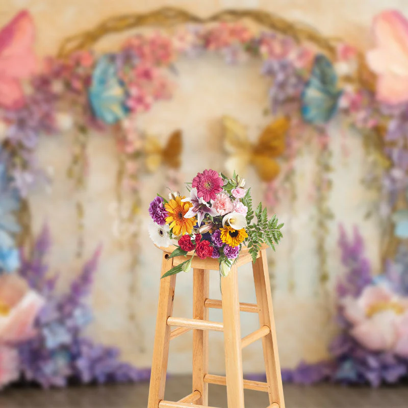Aperturee Beige Retro Wall Floral Butterfly Photo Backdrop