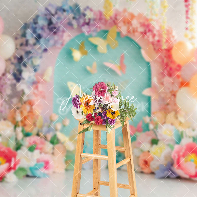 Aperturee Colorful Floral Butterfly Aesthetic Photo Backdrop