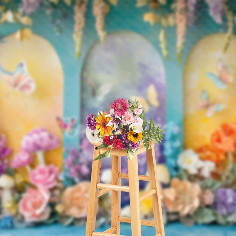 Aperturee Colorful Floral Garden Butterfly Fine Art Backdrop