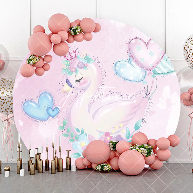 -70%Purple Floral Balloons Swan Round Birthday Backdrop—